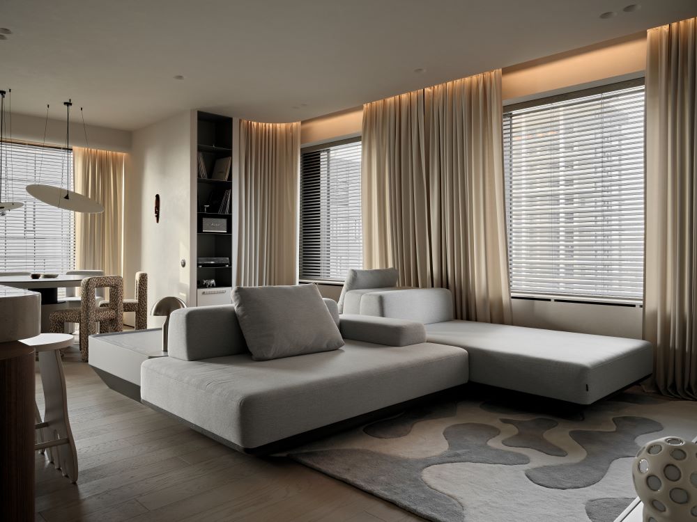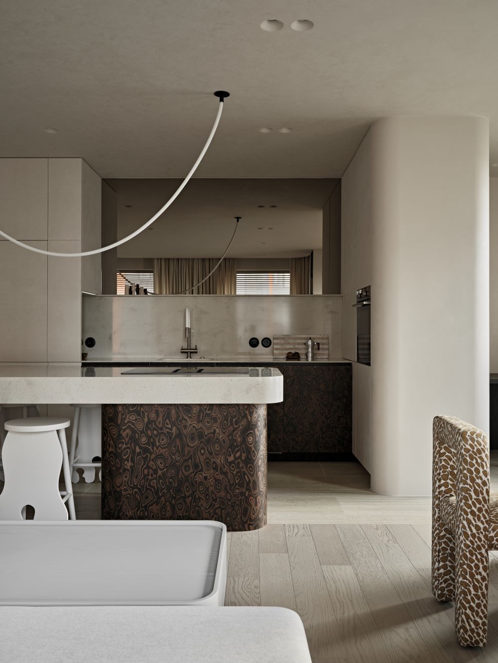 Интерьер проекта CHICAGO — это тёплая и спокойная интерпретация Japandi с африканскими акцентами.