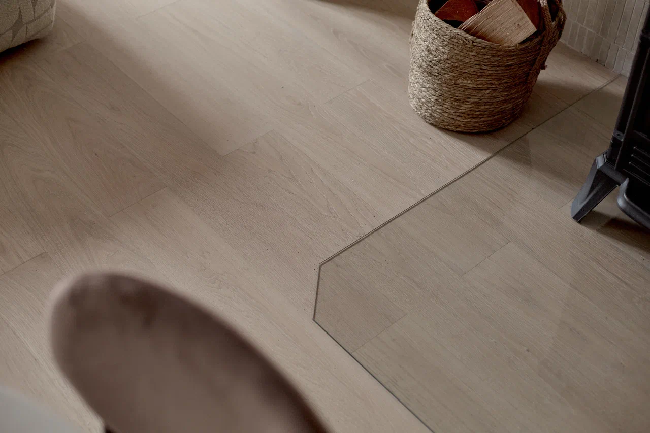 На полу — кварцпаркет из натурального дерева, дизайн Quartz Parquet Дуб Испанский 404 из коллекции Классик.
